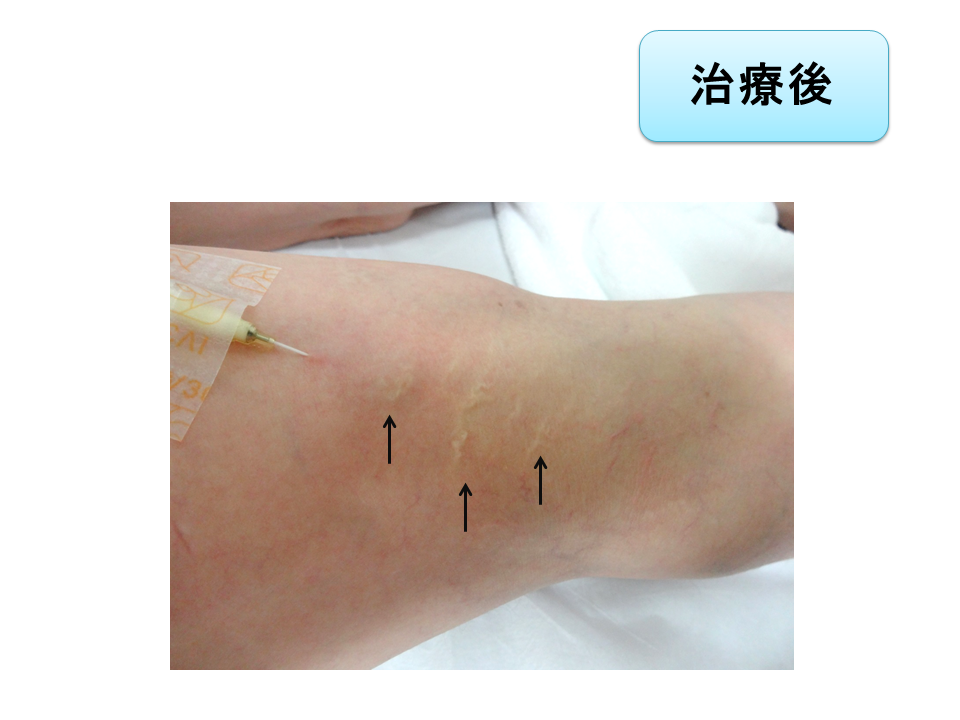 硬化剤が入っていくとこのように血管が白くなり少し浮き出てきます。